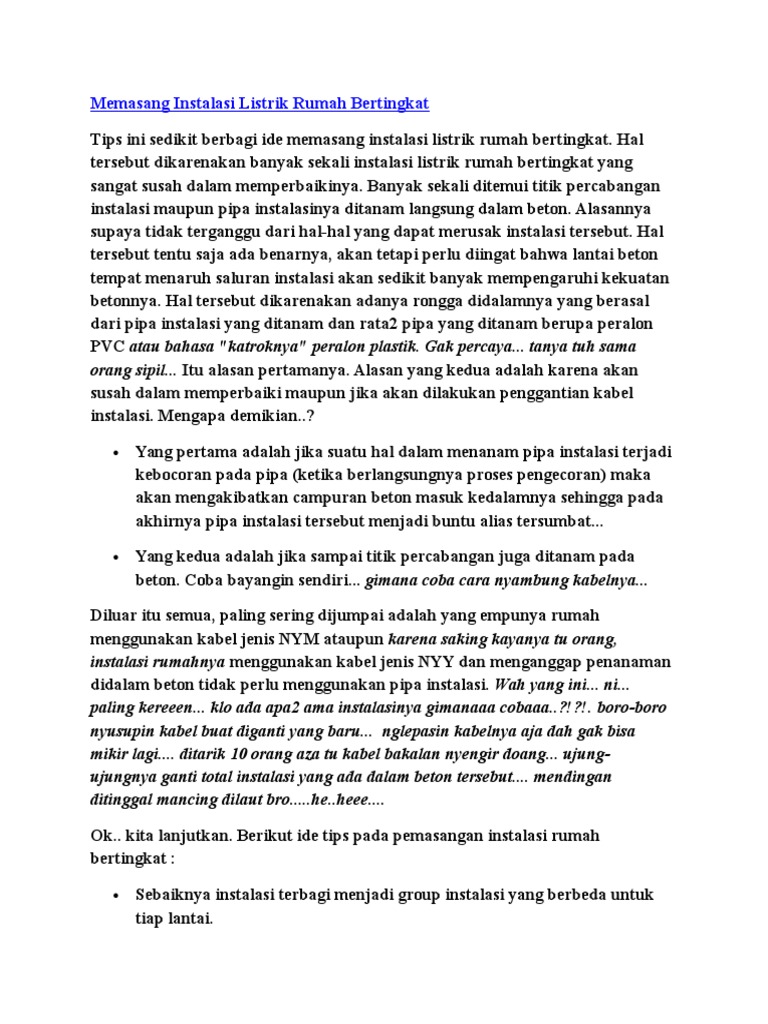 Cara Pasang Instalasi Listrik Di Rumah Docx