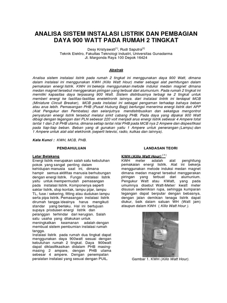 Analisa Sistem Instalasi Listrik Dan Pembagian Daya 900 Watt Pada Rumah 2 Tingkat