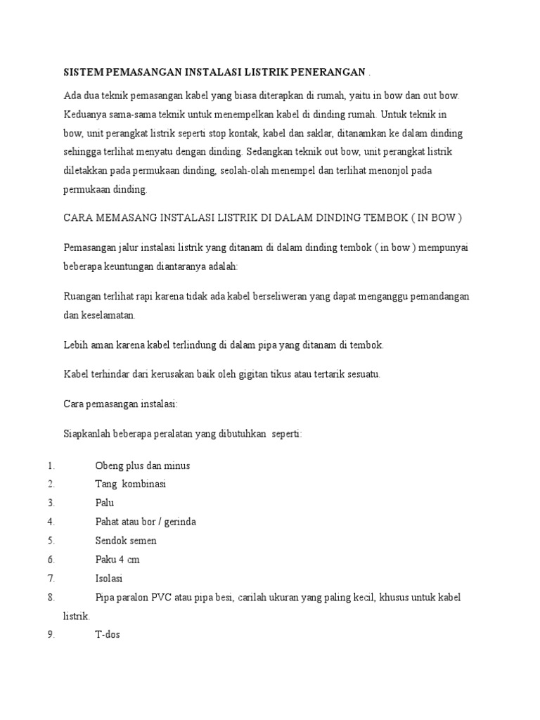 Sistem Pemasangan Instalasi Listrik Penerangan Docx