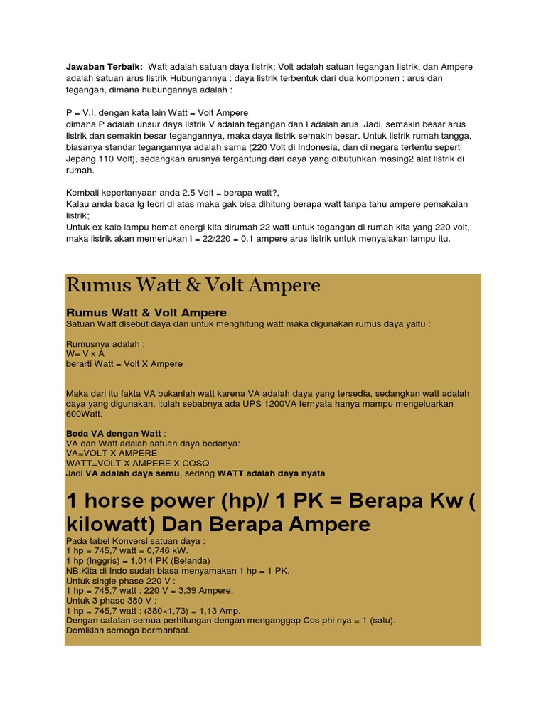 1 Ampere Berapa Watt Satuan Ampere Watt Dan Volt Serba Channel